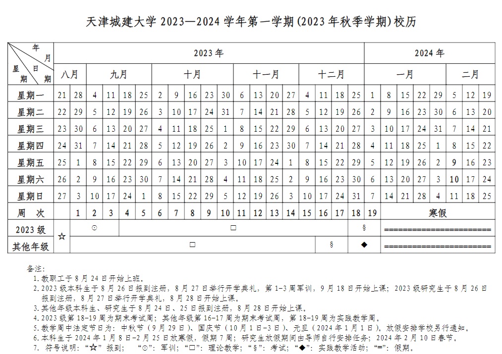 2023年秋季学期校历