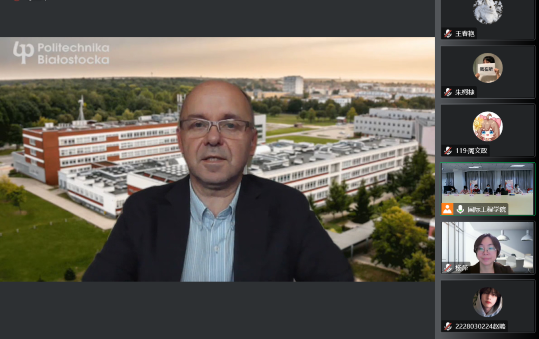 随后,会上播放了合作院校波兰比亚威斯托克工业大学副经理Andraka 教授和克拉科夫工业大学副经理Bojanowski教授及建筑系主任、风景园林系主任为2022级新生精心准备的欢迎视频。