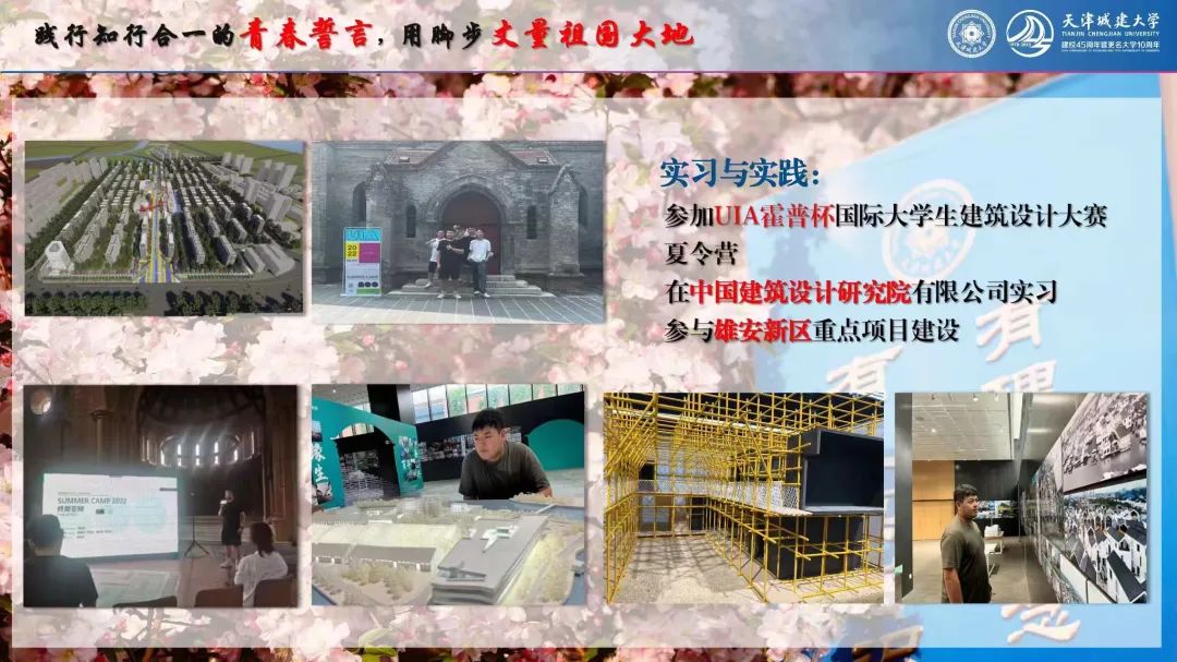 国家战略,积极融入。我参加霍普杯国际老员工建筑设计大赛夏令营,和中国建筑设计研究院的实习,参与雄安新区重点项目建设,为将来服务国家社会打下基础。