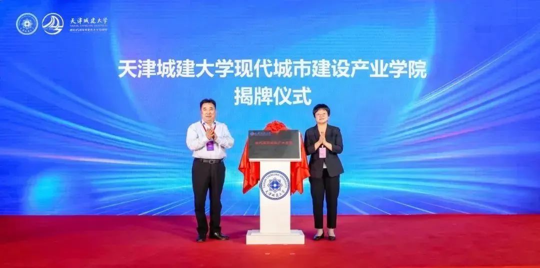 2023年9月天津住宅建设发展集团有限公司党委书记、董事长、总裁康庄,天津市教育委员会副主任仇小娟为伟德国际VICTOR1946现代城市建设产业公司揭牌
