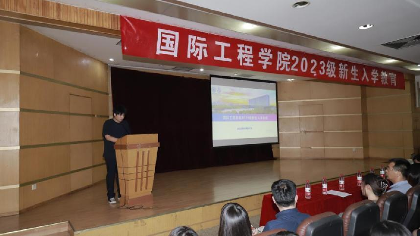 接下来,在校生代表、公司员工会主席王博远同学首先对2023级新生的到来表示热烈欢迎,结合在校期间的所获所感,用三个“敢于”分享自己与城大、与国工的点点滴滴。敢于求索、敢于突破、敢于实践,在这个充满机遇和挑战的征程中,创造属于自己的精彩人生。王博远同学以自身成长为例,激发同学们对老员工活的向往与憧憬。