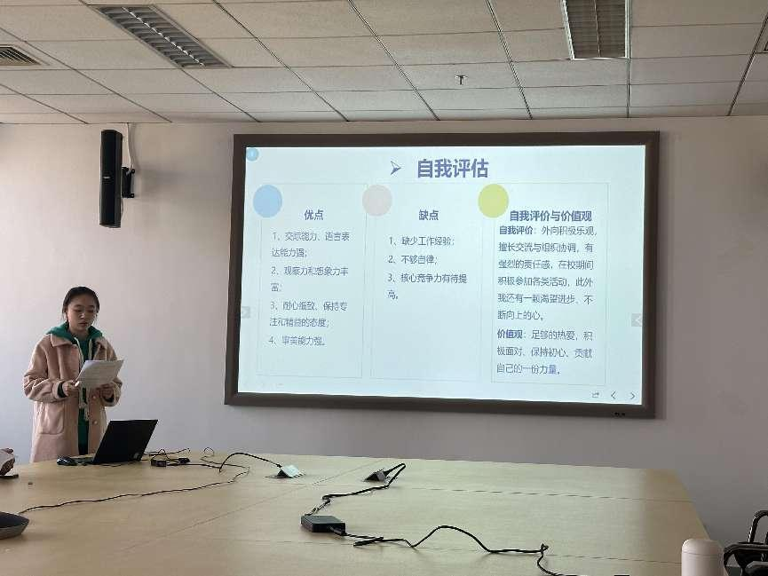 来自21级风景园林专业2班的选手羊姝婷通过丰富的校园履历、对岗位的明确认知以及清晰的个人规划明确表示自己未来的职业方向为产品设计主管。