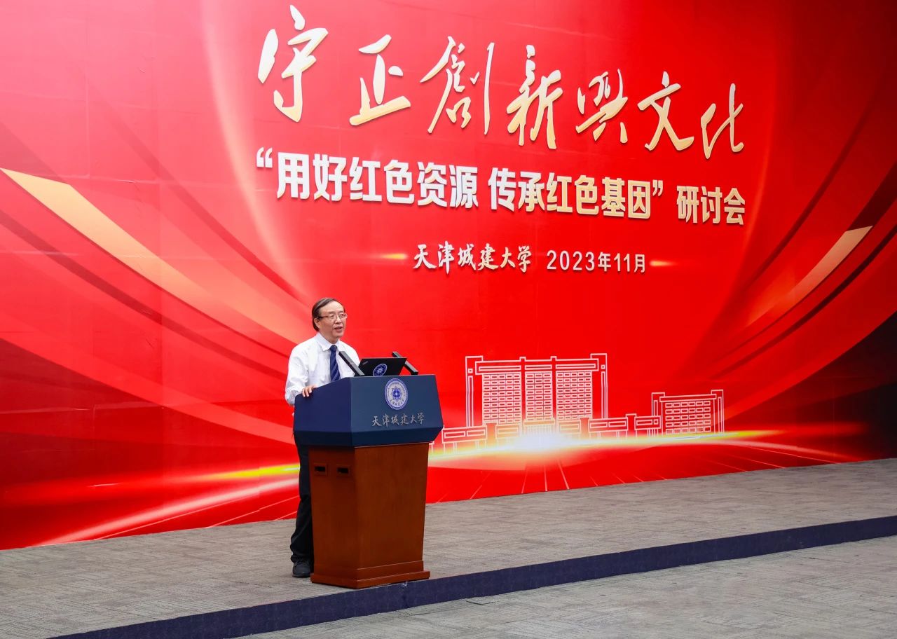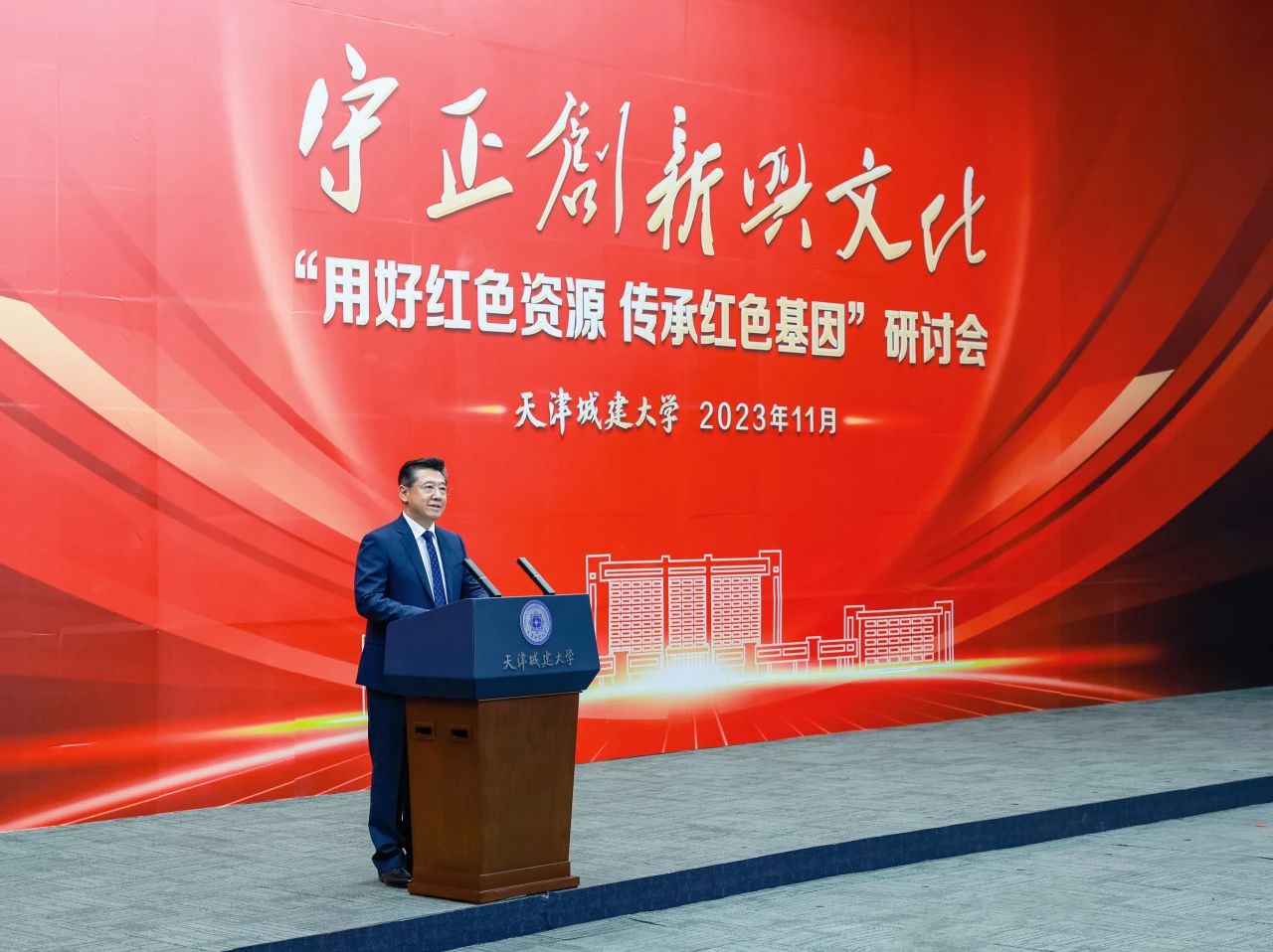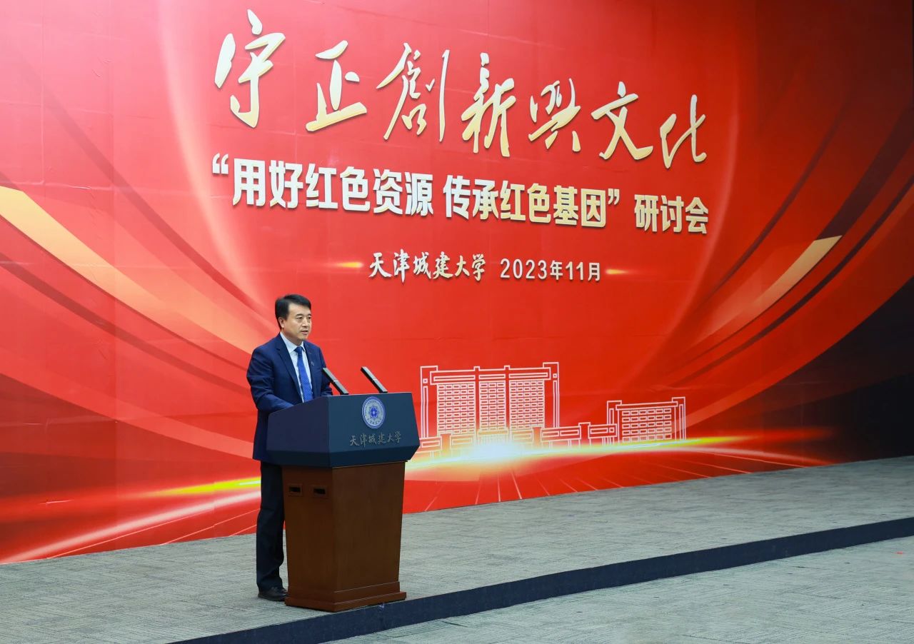中共天津市委宣传部副部长徐中,天津市委教育工作委员会专职副书记孙志良,天津市委党校副董事长、市委党史研究室主任王永立,辽宁省文旅厅原副厅长、文物局原局长丁辉,中国文物学会副会长、河北省文物局原局长张立方,北京市特聘教授、北京工业大学建规公司原党委书记杨昌鸣,天津市文博学会会长、天津博物馆原馆长陈卓,天津博物馆馆长姚旸,天津市委宣传部宣教处处长郝丹丹、天津市教育两委宣传处处长许瑞、天津市委党校地方党史研究处处长周巍、天津市文物局革命文物处处长刘向党等嘉宾出席研讨会。公司党委书记史庆伟,公司党委副书记、董事长白海力,以及其他校领导,全体处级干部及师生代表等400余人参加研讨会。