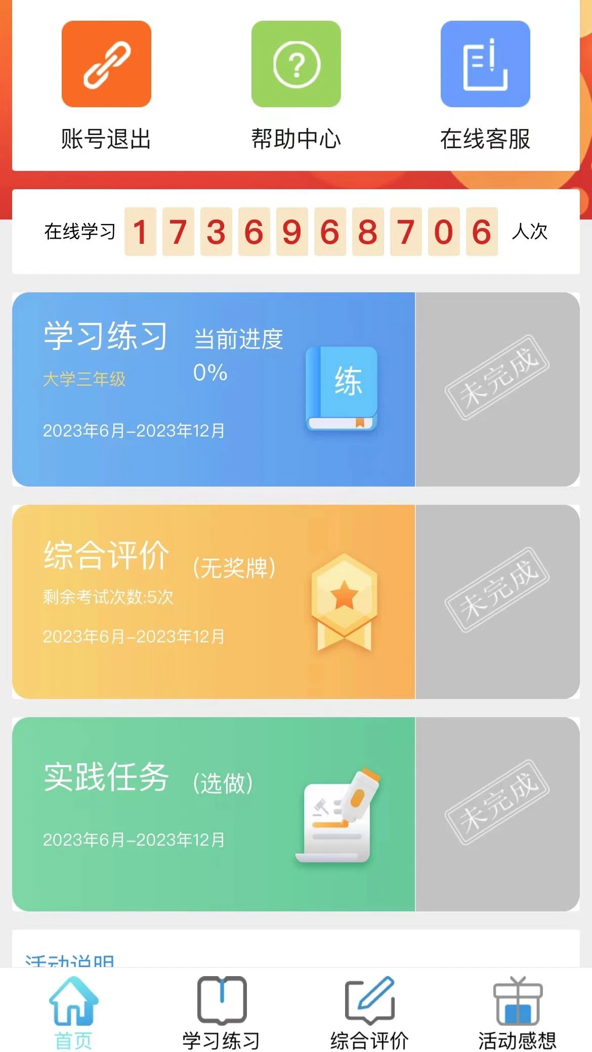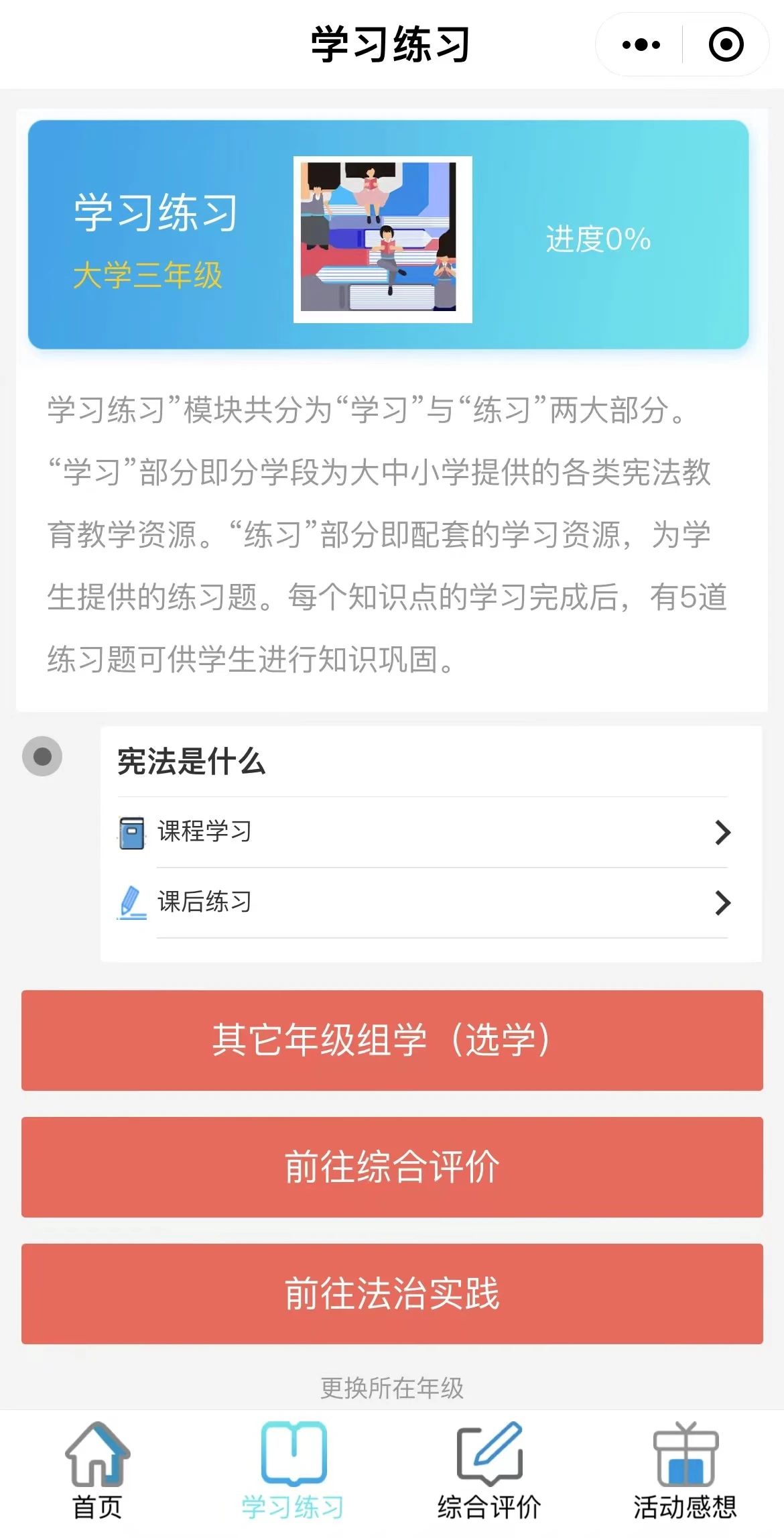 一是“学习练习“模块,需要同学们完成课程学习以及课后练习。