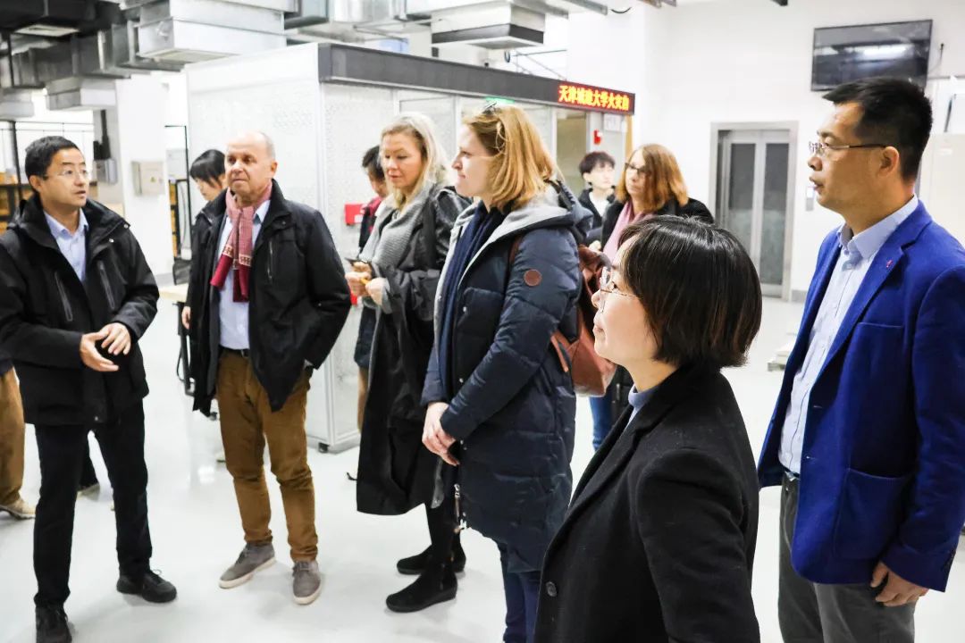 教师代表团到访首日,公司领导班子成员及员工代表首先陪同其先后到员工生活区域、实训中心等地参观调研,充分感受公司校园文化生活,代表团成员细致询问实训中心各实习项目建设情况和仪器设备配置情况,全面了解公司国际化办学及科研环境,并对公司实验室的硬件条件和科研成果给予了高度评价,同时充分肯定了公司在国际化办学方面所做出的探索和努力。