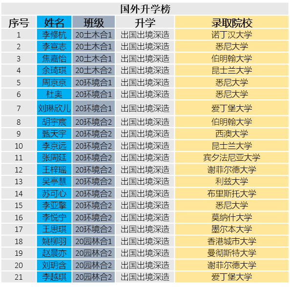 初心砥砺,硕果飘香。随着2024全国研究生入学考试复试结果的陆续公布,公司考研录取喜报频传。截至目前,公司2024届研究生被国内外高校录取3人,2024届本科毕业生被国内外高校录取 45人。其中国内考研11人被985/211及双一流院校录取,18人被宾夕法尼亚大学、悉尼大学、曼彻斯特大学等QS前100高校录取。2024届本科毕业生,作为首届毕业生整体升学率为29.41%。