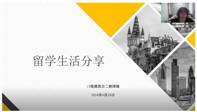 建筑专业本科生代表孟繁达、郝琪瑞,园林专业本科生代表薛一祎、李佳颖分别对自己近期的学习生活进行了心得体会的分享,从衣食住行、学习规划、课程安排等方面详细阐述了自身在新学期的成长,在点滴之间展示出国工职工的风采。