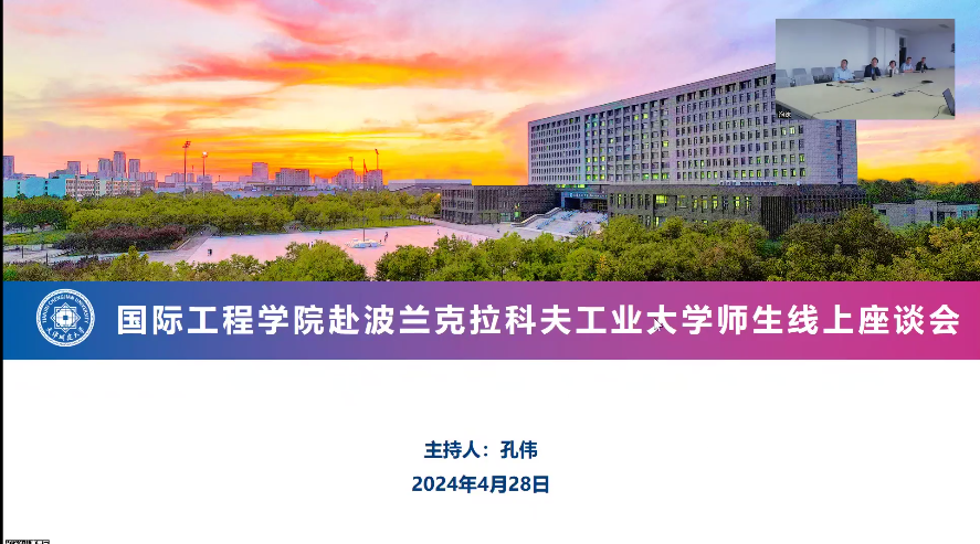 2024年4月28日,伟德国际VICTOR1946开展赴波兰克拉科夫工业大学线上师生座谈会,公司全体领导班子成员、随行教师,及全体克拉科夫工业大学(CUT)本科职工参加本次会议;此次线上座谈会由国际工程公司党总支副书记孔伟主持。