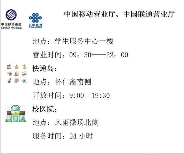 校内公共设施地点及开放时间