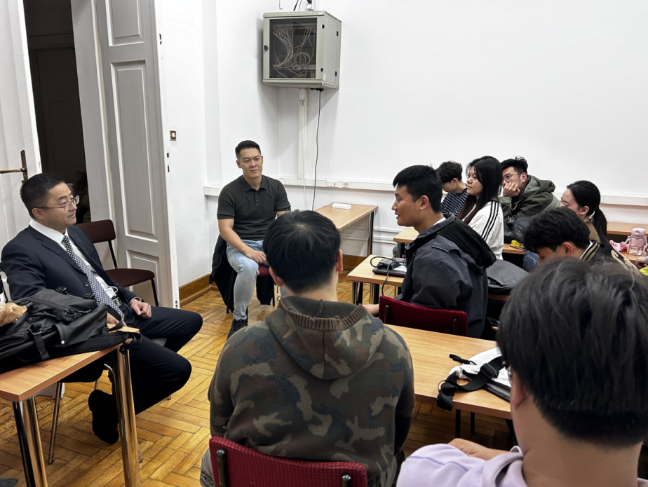 On October 8, 2025, the Old Town campus in Krakow, Poland, was filled with a warm autumn atmosphere. Vice Dean Li Guangmin of ISE, accompanied by faculty member Jing Yifan, made a special visit to this location. They held a cordial discussion with representatives of graduate and undergraduate students studying in Poland, gaining an in-depth understanding of the students' recent academic and daily lives while conveying the college's profound care and earnest expectations.