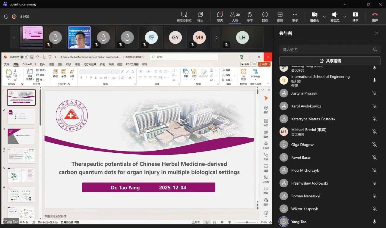 波兰克拉科夫工业大学Piotr Michorczyk经理线上连线致辞,他高度评价了两校联合研究中心取得的合作成效,希望以此次研讨会为新起点,进一步深化双方在纳米材料制备与应用技术转化等领域的务实合作,携手应对全球材料科学领域的机遇与挑战。