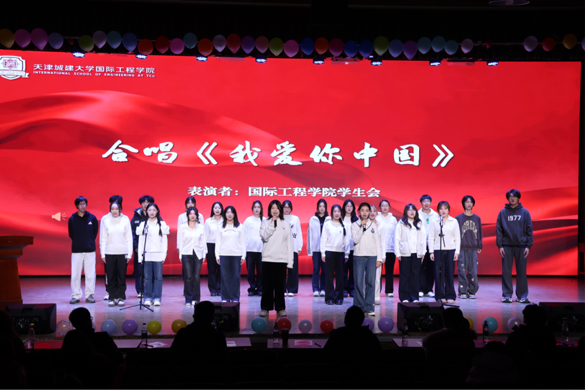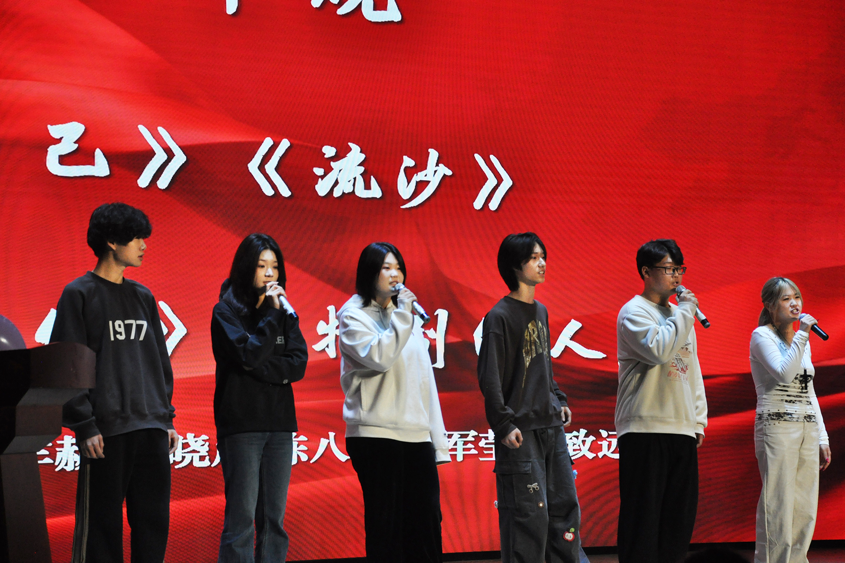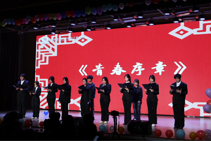 2025级建筑合二班团支部的合唱与朗诵交织上演,学子们将“使命在肩,青春如歌”的担当融入激昂语调;合唱嘹亮、节拍铿锵,把“青春如歌”的热忱凝进悠扬旋律,唱出了当代青年的意气风发,诵出了新时代学子的赤诚初心。