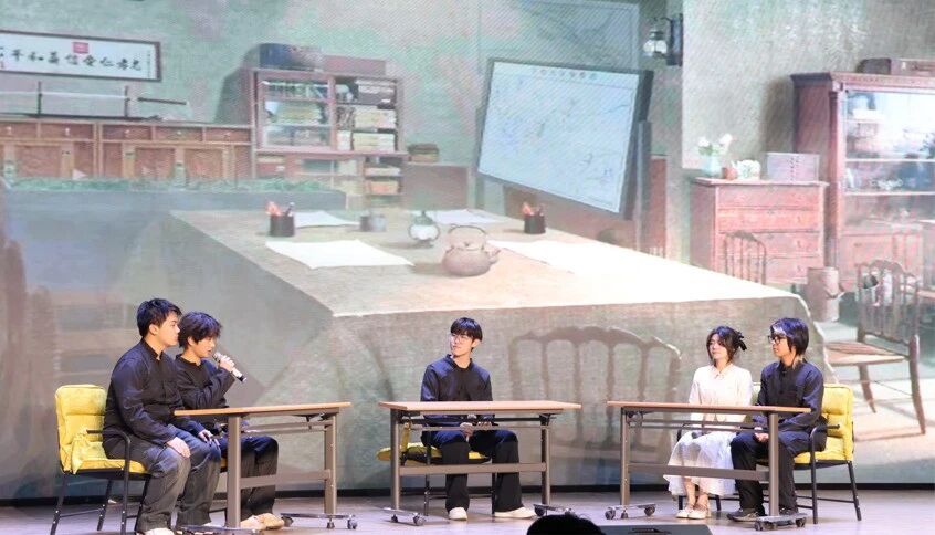 2025级环境二班团支部的表演,重现《觉醒年代》里的思想激荡。学子们身着民国长衫与员工装,慷慨陈词、振臂高呼救亡图存的口号,将百年前的思想交锋鲜活复刻。舞台上的每一次交锋,都是青年对“觉醒”的当代注解。
