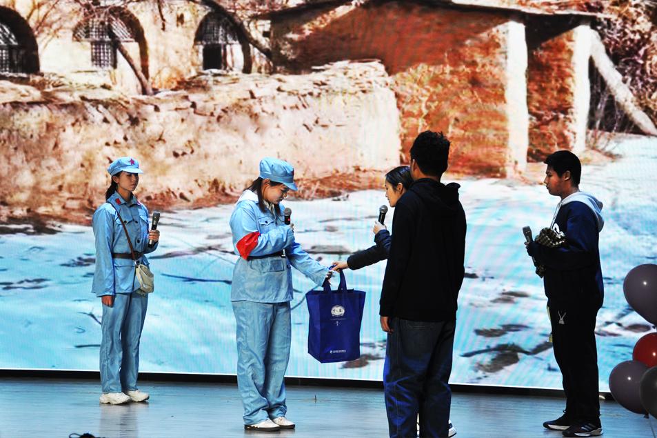 2025级土木合二班团支部的《青春铸魂·报国志》如约上演。学子们身着工装与特色服饰的身影活灵活现,用惟妙惟俏的演绎展示工匠精神、科学家精神的风采,让“青春铸魂”的主题在舞台上落地生花。