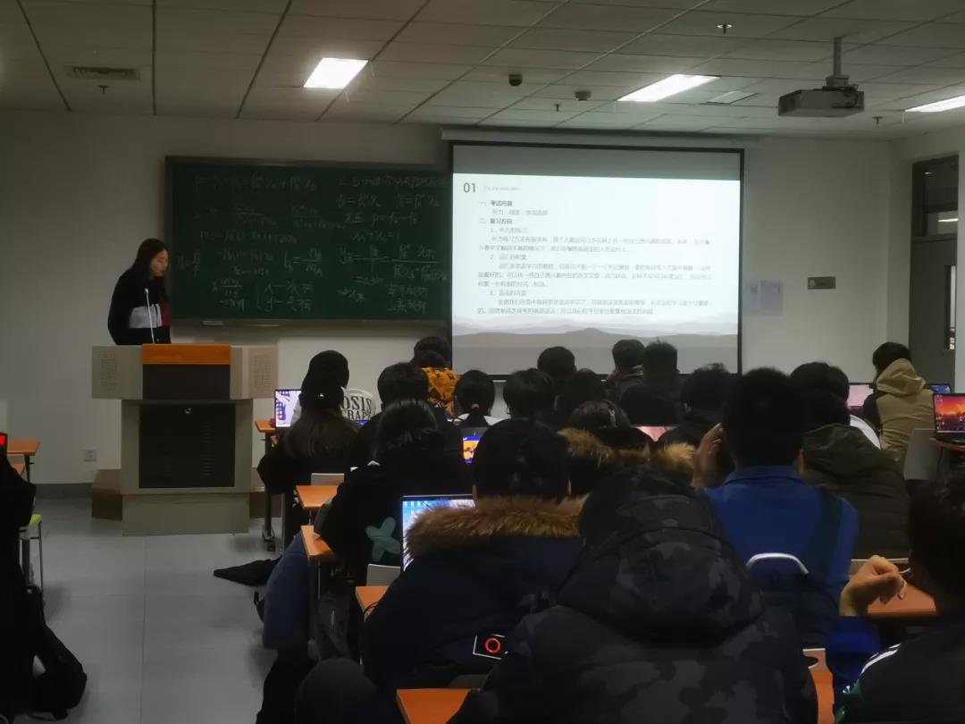 会议首先由王坤朋老师对考试的相关细节进行详细解读,强调了此次考试的重要性,并逐一解答了同学们的疑问。随后,四位20级的学长学姐们结合考试内容和自身经验,详细介绍了笔试、口试的题型、难度,传授了自己在考场上感受到和复习时体会到的一些小技巧,帮助同学们找到备考方向并且调整好心态。