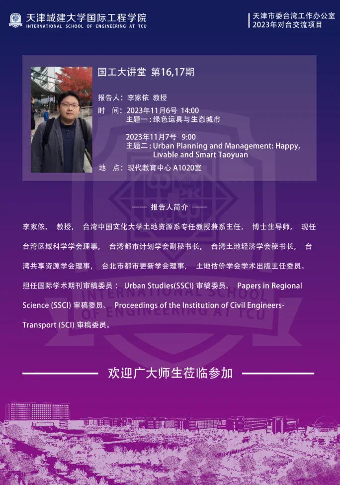 国工大讲堂 | 绿色运具与生态城市&Urban Planning and Management
