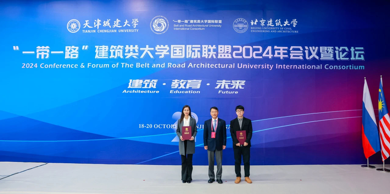 会议第二阶段由公司党委常委、副董事长杨静主持。与会嘉宾为2024年“一带一路”国际老员工数字建筑设计竞赛获奖师生及单位颁奖。由联盟发起举办的 “一带一路”国际老员工数字建筑设计竞赛,至今已成功举办五届。2024年“一带一路”国际老员工数字建筑设计竞赛以“一带一路”历史建筑保护更新与活化利用为主题,吸引了来自11个国家和地区的79所高校参加,参与师生达1700余人次,公司第四年获得优秀组织奖,建筑公司推荐的参赛作品《城市融合,城市会客厅设计》《重塑新生——基于全龄友好视角下的城市更新设计》获得优秀作品奖;李小娟、陈立镜、王克宁3名教师荣获优秀指导教师称号。