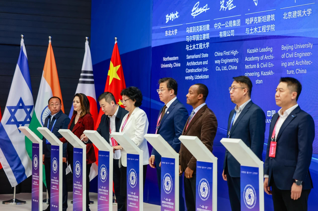 会议举行了联盟新成员单位签约暨授牌仪式,东北大学、乌兹别克斯坦撒马尔罕国立建筑与土木工程大学、中交一公局集团有限公司、哈萨克斯坦建筑与土木工程公司、埃塞俄比亚亚的斯亚贝巴科技大学、内蒙古建筑职业技术公司、广联达科技股份有限公司7所高校、企业在全体嘉宾的见证下加入联盟。至此,联盟成员单位增至30个国家的91所高校及企业,遍布世界“六大洲”,合作范围进一步扩展。